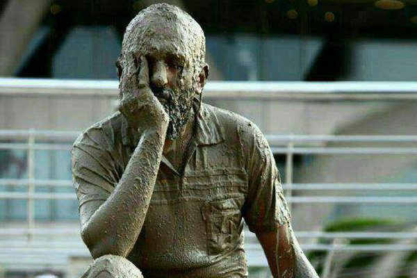 مجله مهر - آزاده باقری: چهارده سال است که به صورت حرفه ای در زمینه مجسمه سازی و پیکر تراشی مشغول به کار و فعالیت است؛ اما او بعد از این چهارده سال تلاش هنری با حرکتی نمادین توانست خود و هنرش را به بسیاری از مردم بشناساند. مسعود نیکدل، یک هنرمند معترض به پدیده بحران آب است. او کسی بود که از شرقی ترین استان کشور، خراسان خود را پای بلندترین برج کشور، برج میلاد رساند و سه ساعت تمام پشت به برج در محلی که پر رفت و آمدترین منطقه آنجاست بر روی پله ها نشست. آن هم در شرایطی که تمام بدنش را گل پوشانده و بدون هیچ گونه حرکت و با چشم بسته دستش را بر زیر چانه گذاشته بود. سه ساعت سکوت کرد و به هیچ واکنشی از مردم عکس العملی نشان نداد. در این چند ساعت رهگذران او را یا مجسمه تصور می کردند، یا دیوانه یا هزاران سوال برایشان پیش می آمد چرا مردی با این وضعیت، بی صدا و بی حرکت نشسته است. فضای مجازی در اینجا کار خودش را به درستی ایفا کرد. در کمترین زمان ممکن تصویر و خبر وجود مردی که به شکل مجسمه چندین ساعت پشت به برج میلاد در اعتراض به کم آبی نشسته بود منتشر شد. مسعود نیکدل سه ساعت خود را به جای زمینی تصور کرد که روز به روز دارد خشک تر می شود...