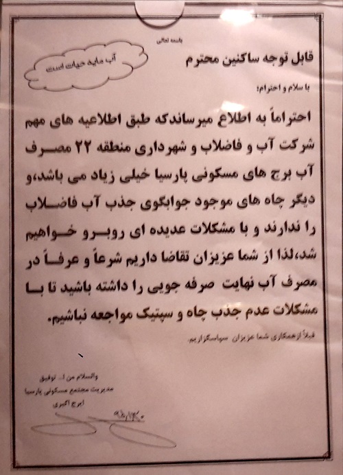 قابل توجه ساکنن محترم مجتمع مسکونی منطقه 22 تهران