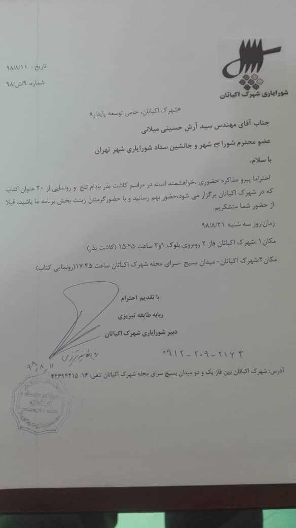 نوید اجرای طرح کاشت بذر بادام تلخ /دوستاران آوای طبیعت استان تهران منطقه 5 شهرک اکباتان /وشورایاری/ وشهرداری ناحیه ا/کباتان وشهرداری منطقه 4 /تهران سه شنبه 21 آبان با /حضورمهندس میلانی شورای شهرتهران /و مهندس محمد شرافت مدیر عامل دوستاران آوای طبیعت استان تهران/