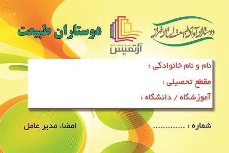 از بین داوطلبین جوان دختر وپسر همراهی در ایجاد طبیعت سالم کارت عضویت دوستاران آوای طبیعت استان تهران